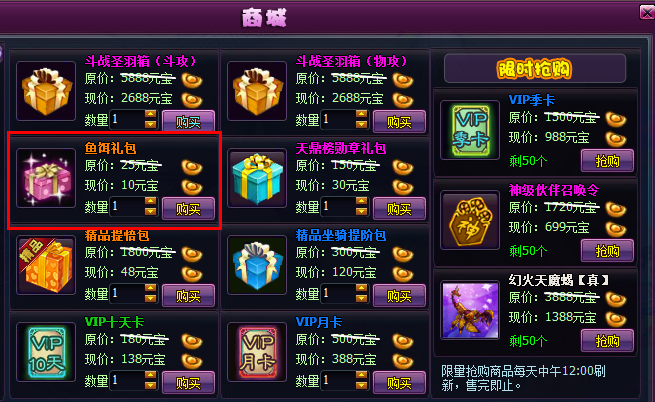 3.vip3以上(含vip3)玩家可以使用批量钓鱼功能,只限珍稀鱼饵可以使用,点击批量钓鱼按键,将会全部消耗掉背包中珍稀鱼饵,直接获得奖励
