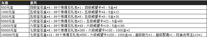 备注: 仅限于活动时间内累积充值的金额,才能获得超值回馈礼包.