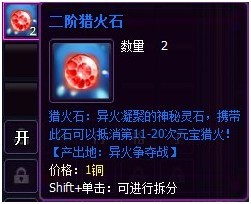 5、新增道具【猎火石】,使用此道具可以抵消元宝猎火的元宝消耗,在【神火争夺战】活动中可以获得二阶猎火石,所有猎火石每天只能使用5次。