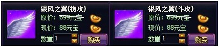 7、【商城】-【个性】界面增加88元宝时装—银风之翼 的售卖