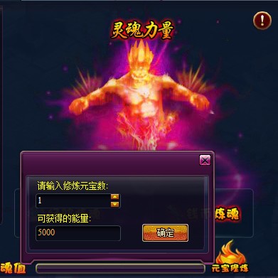 5、VIP3以上等级玩家的境界技能-【灵魂力量】,新增元宝炼魂功能,花费1元宝可获得5000点炼魂值。