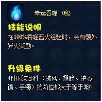 幸运吞噬:在100%吞噬蓝火经验时,会有额外神火奖励。(注:随机奖励1个1级绿火或1级蓝火)