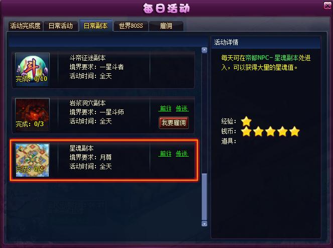 5.活动面板日常副本新增古龙秘境,星魂副本。
