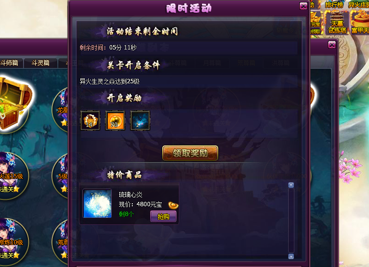 领取奖励条件:在限定的时间内,达到对应关卡开启条件时,即可领取奖励