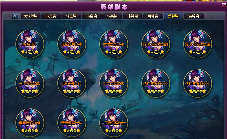英雄副本中可以激活关卡限时开启活动的篇章是:战王篇、战皇篇、战宗篇、战尊篇、月尊篇、荒尊篇、洪尊篇
