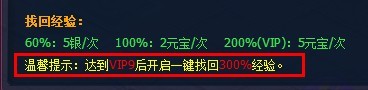 9.经验找回界面增加一键300%经验找回条件的告知。