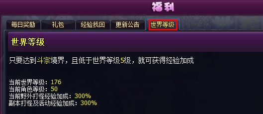 4.修改了世界等级为全服前20名玩家的平均等级。