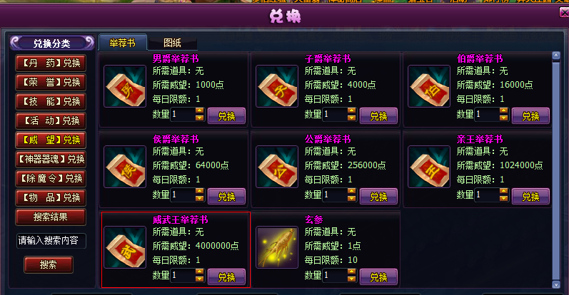 1)五等亲王新增五等王爵印图纸,五等威武王新增五等威武王印图纸。兑换商城增加威武王举荐书兑换,需4000000威望。