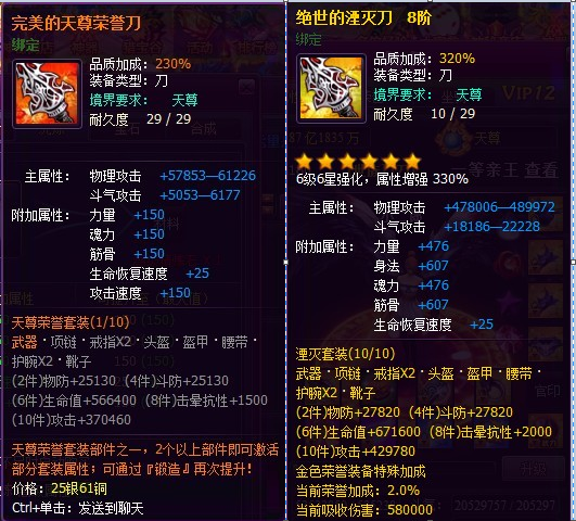 5.开放天尊荣誉套装以及湮灭套装。