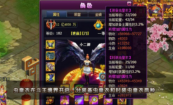 1)虫皇衣战王境界开启,共分两种,时装虫皇衣和装备虫皇衣。