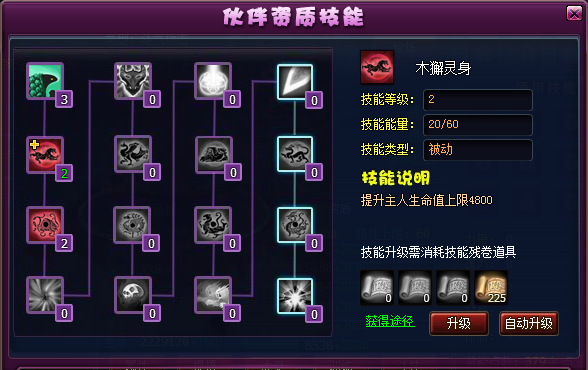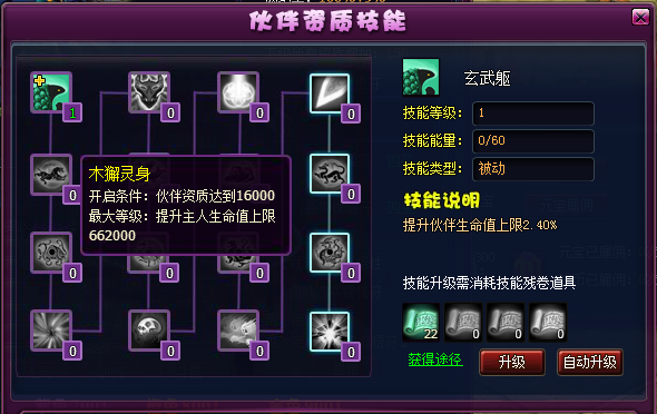 2)伙伴资质技能的升级