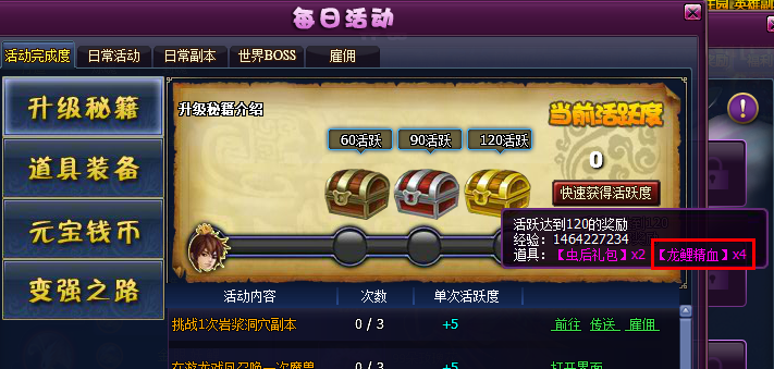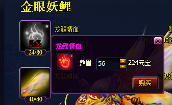 1龙鲤精血可在活动完成度中的120活跃礼包中获得,也可以点击购买按钮直接购买,如下图: