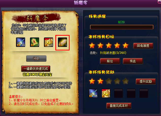 13、妖王挑战令掉落修改为礼包掉落,提高了高级资质残卷的掉落概率