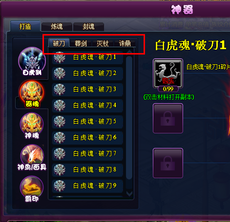 1、神器器魂和神魂界面分类显示优化: