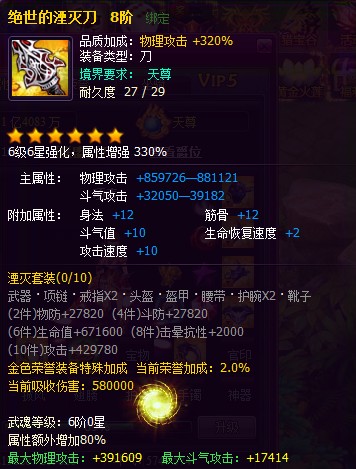 满阶时,武器,项链,戒指类攻击装备最高可额外增加80%属性。