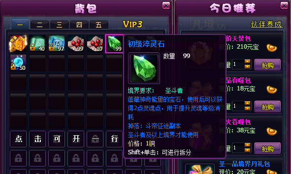 淬灵石,使用后可以获得灵魂点数,可以用于提升灵魂的等级;在等级提升面板进行提升灵魂等级操作;