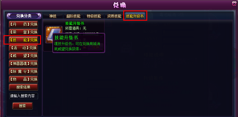 技能升级书可以在兑换商城-技能兑换-技能升级书是用威望值兑换获得