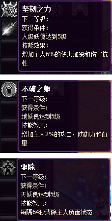 当妖傀达到相应的形态和等级时将自动获得强大的妖傀技能: