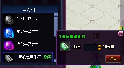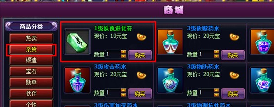② 妖傀进化符可直接在妖傀修炼界面购买,也可在商城-杂货中购买。