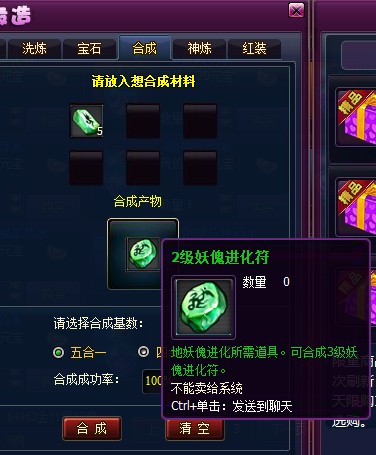③ 妖傀进化符可5合1合成更高级的进化符。