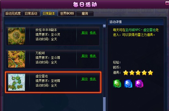副本每天可进入3次,前2次免费,第3次进入需消耗8不绑定元宝。