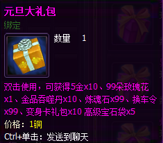 备注:礼包物品均为绑定(具体物品以游戏实际为准),