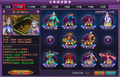 1. 该篇章共分为10个小关卡,此章终极称号:大战师。
